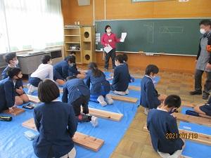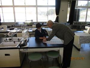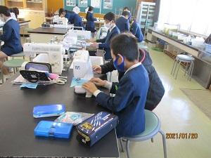 5年生。家庭科でミシンの学習をしていました。手縫いとはどう違うのか考えた後、実技もしていたようです。