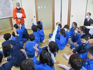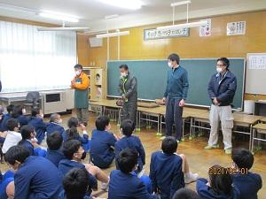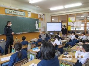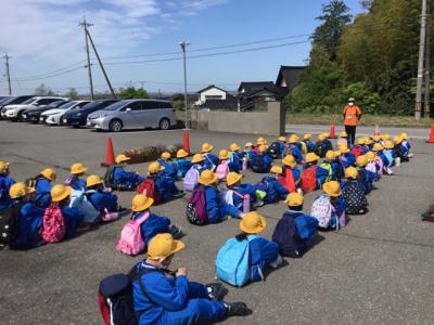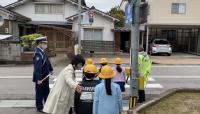 津幡警察署の方からのお話を聞き,交通安全のDVDを観た後,学校周辺の道路を実際に歩きながら安全な歩き方について学びました。