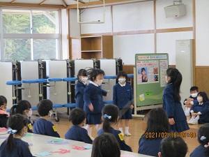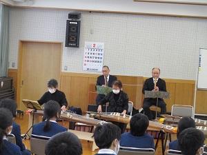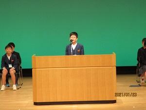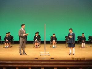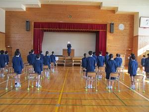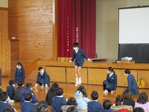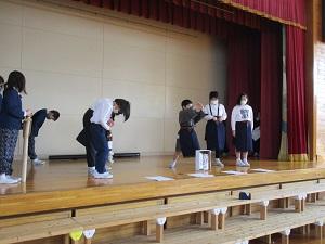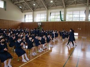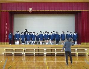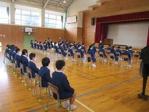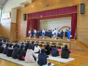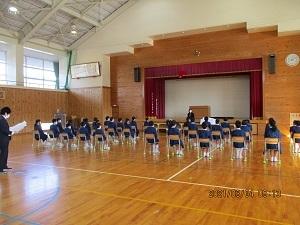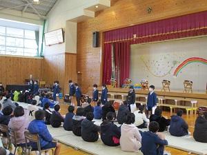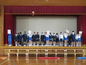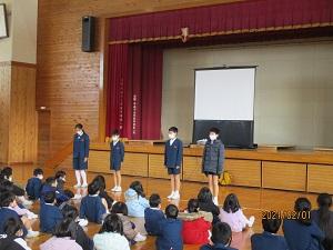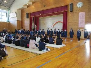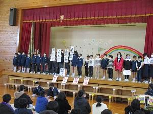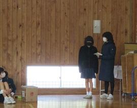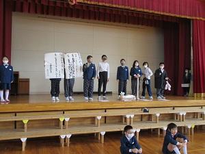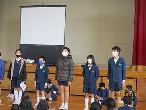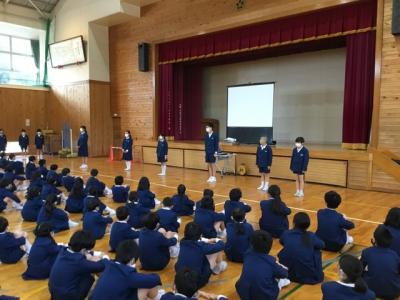 次に校長先生のお話の中で、1年を振り返り、各学年の代表の子たちに、この一年で自分が成長したことやがんばったことを発表してもらいました。最後に生徒指導担当から、春休みの生活で気をつけてほしいことをお話していもらいました。