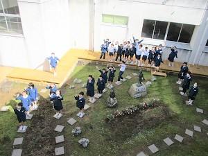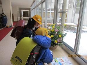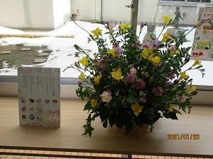 以前、畑の先生としてお世話になった浄光さんが、「卒業式には間に合わなかったけれど、学校に…」とエアリーフローラを持ってきてくださいました。花がとっても大きくて、茎も太く、すごく立派です。みんなの今日の修了をお祝いしてくれているようです。ありがとうございます玄関のパンジーやビオラも、本当にきれいに咲いています。