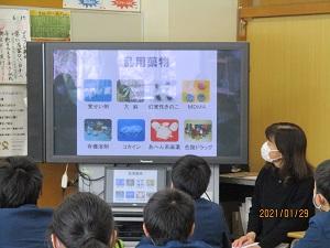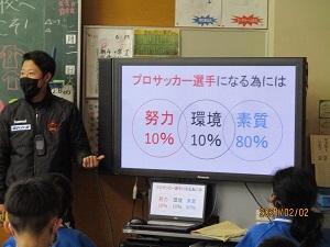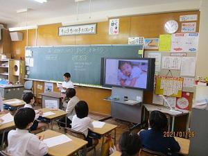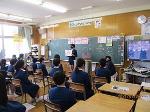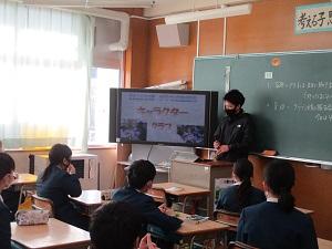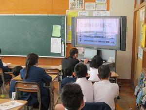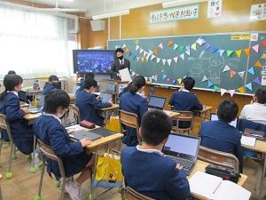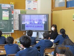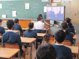 2限目は、体育館の寒さや新型コロナウィルス感染拡大を配慮して、教室で放送とプレゼンテーションソフトを使っての始業式でした。