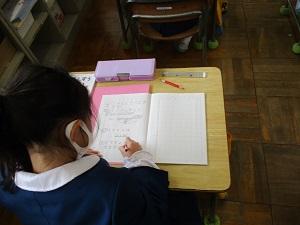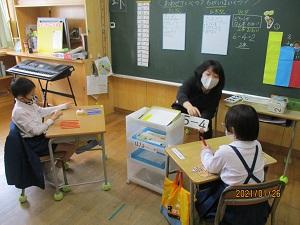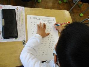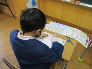 1年生。1月の学習目標、「4点セットでスタートしよう」がしっかりとできています。