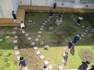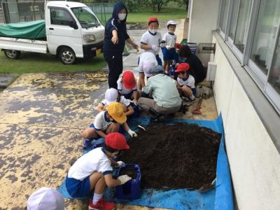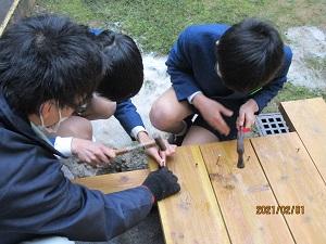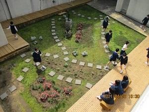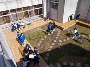 ゲストティーチャーの大浦さんから指導していただき,苗を植えていきました。初めはおそるおそるといった感じだったのですが,だんだん慣れてきて,思っていたより早く終了しました。上手に植えることができたので,大浦さんも驚いていました。
