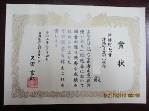 今日は雨も降り、肌寒い一日でしたね。そんな中、3・4限は卒業式の予行でした。はじめに、「読書賞」と「税の使い道総選挙津幡町長賞」の表彰伝達をしてから、全体を通して練習してみました。途中休憩も入れましたが、4・5・6年生はとても集中して頑張っていました。