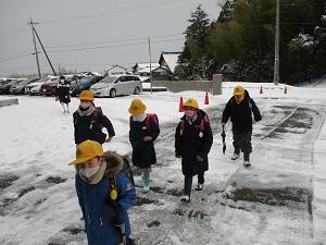 今朝は、英田小学校のあたりにも雪が少し積もりました。子どもたちは元気に集団登校で、学校に来ました。えらいですねまた6年生の何人かの子が、ボランティアで玄関の雪をどかしてくれました。ボランティアの皆さん、ありがとうございました。