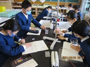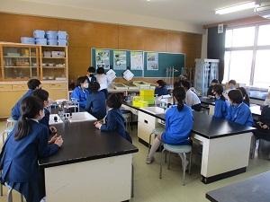 4年生。理科の実験で、1人1人がマッチを擦り、鉄球を温めて金属は温めるとどうなるのかの実験をしていました。