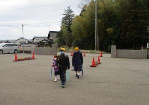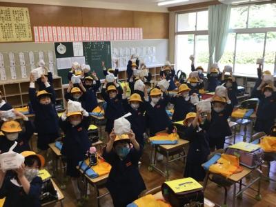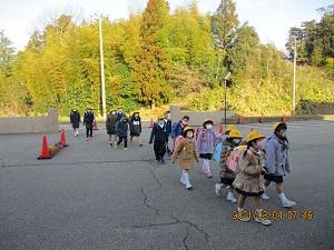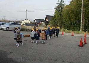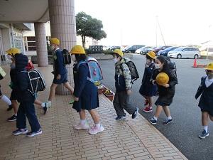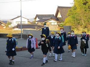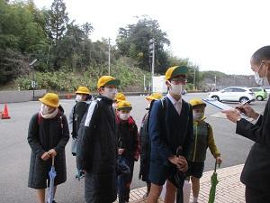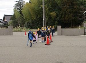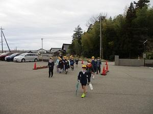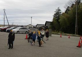 毎朝行っている集団登校。今日はその集団登校班による集団下校訓練を行いました。悪天候などにより,集団下校を実施する場合もあります。そうした場合に備え,訓練を実施しています。今日は担当の先生も子どもたちと一緒に歩き,安全確認や危険箇所の確認を行いました。