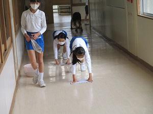 5年生と1年生は、今日から長休みに縄跳び運動を開始しています。蜜を避けるために、今年度は体育館でする学年を決めて行っています。他の学年も、廊下の広いスペースで体を動かしていました。