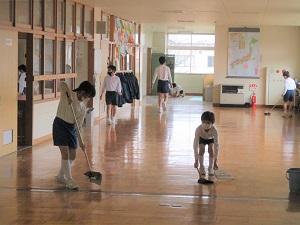 今日は、2回目の重点掃除の日。子どもたちも先生方も、手にほうきや雑巾などをもって掃除してくれていました。
