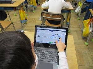 今日はICTサポーターの先生がお越しになり,1年生にパソコンの操作を教えていただきました。お絵描きソフトを使って,絵を描いてみました。子どもたちからは,「おーっ」とか「すごーい」といった声が上がっていました。