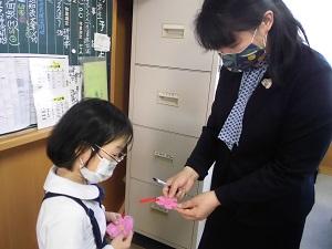 加賀爪にお住まいの川幡さんが作られたとてもすてきなペン立てを,1年生にいただきました。いろんな柄があり,子どもたちはどれがもらえるのかワクワクの様子でした。1年生は,今日早速家に持ち帰りました。大切に使ってくださいね。そして,川幡さんありがとうございました。