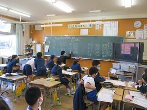 6年生。算数科少人数の授業です。新しく来てくださった先生ともとても和やかに授業していました。