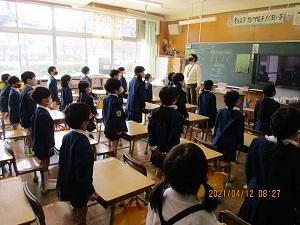 入学して2日目の1年生。スタートカリキュラムでまだ給食は始まっていませんので、11時過ぎまで学習し、その後教師が引率して集団下校しました。「楽しかったぁ~」「さようなら」と元気に挨拶して帰っていきました。何件かのお家の方々は、途中まで迎えに出てくださっていました。本当にありがとうございました。