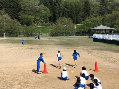 週末の雨模様から打って変わり,今日は晴天に恵まれました。グラウンドでは5年生が体育の授業で,50メートルのタイムを計っていました。