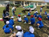 田植え体験の後は,田植え機を使って苗を植える様子も見学させてもらいました。昔と現在の田植えを比較することで,稲づくりの大変さが実感できたと思います。