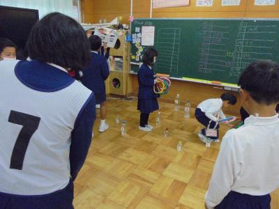 これまでも当ホームページでも紹介してきましたが、今日「ふれあいチャレンジ」の本番を迎えました。6年生を中心に縦割り班のメンバーで準備を進めてきました。当日のお店(ゲーム)は全部で10店。
