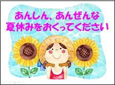 短い夏休みですが、20日の登校日、24日の2学期スタートの日に少しリフレッシュした子どもたちに会えることを楽しみにしています。では、よい夏休みをおすごしください。2学期もどうぞよろしくお願いいたします。