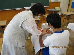 また、越後先生からは、生活目標「感染症を予防しよう」のお話がありました。感染症をさらに予防していくために3つの頑張ること(①冷たくても30秒手洗い、②ポケットに清潔なハンカチ、③マスクを必ずつける。マスクなしではしゃべらない)の確認をしました。