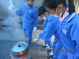 社会の学習では、「水はどこから」の学習をしていました。1回手洗いするのに、水はどれぐらい使うのか、グループで時間を測って調べていました。
