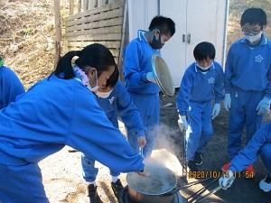 収穫したお米でおにぎりを作り,お世話になった方々を招いて,収穫祭を行いました。