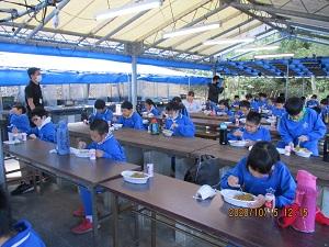 「私たちは、食べる前に「いただきます」と言ってご飯を食べますが、それには2つの意味があるのです。1つは、この給食を作ってくれた人、材料を育ててくれた人、運んでくれた人達への感謝の心です。もう1つは、肉、魚、野菜のいのちをいただくことへの感謝の心です。人間は、いろいろなもののいのちをいただいて食べていかなければ、生きてはいけません。ですから、そのいのちをいただくことに心から感謝して、「いただきます」、いただいた後には「ごちそうさま」を言いましょう」