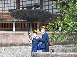 朝、玄関で子どもたちを迎えていると、こんな嵐の中でもあがたっ子たちは元気に登校してきました。