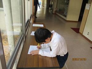 これは、自分のノートの中でのナンバーワンといえるページを机の上に開いておき、他の学年のみんなに見てもらう会です。2階(4・5・6年)と1階(1・2・3年)で主に見合いますが、3年生は、4年生のノートも見ました。