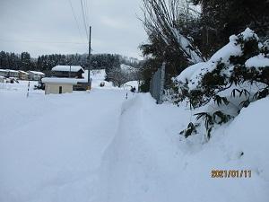 まず、学校から公民館の方へ向かい、郵便局までの歩道は、何とか確保しました。しかし、谷内方面の道はまだ工事の関係の方と連絡がつかず、除雪できていません。谷内方面からの道は、あさってまでには何とかして通れるようにしようと思います。また、このホームページでお知らせしますね。