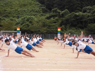 また、今まで一生懸命練習した踊りや組み体操を自信をもって披露していました。どの学年の踊りも組み体操もとても立派でした。一人一人が輝いた素敵な運動会になりました。