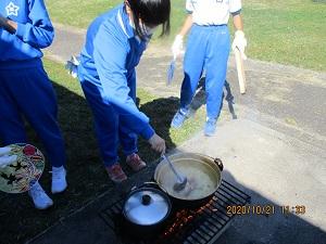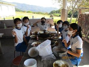 所の先生方も、「こんなに上手に素早く火をおこしたり作ったりする学校は、ないですよ」と褒めてくださいました。さすがに6年生。手際よく、ちゃっちゃと動く姿に感心しました。おこげもほとんどなく、ごはんも炊け、カレーの水加減もバッチリ。とっても美味しいカレーでした。そして、後片付けではなべ底に着いたすすを、一生懸命に黙々と磨く子達。言われなくても自分たちで動ける6年生。またまた感心しました。