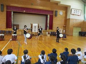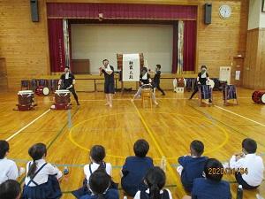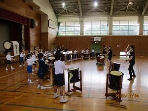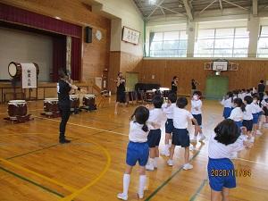 すてきな演奏を聞いた後、太鼓や和楽器の紹介を兼ねて一つ一つの音色を味わいました。