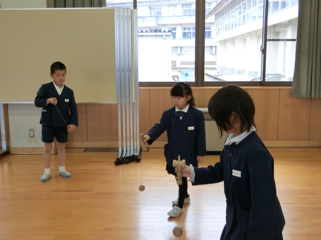 1月23日(水)の3,4限目に1年生が生活の時間に昔遊びをしました。