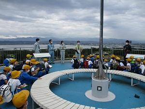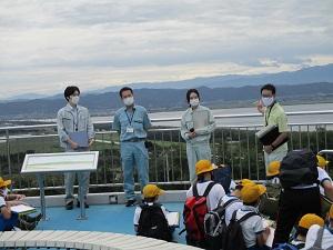 まずは、内灘町の展望台から河北潟全体を眺めながら、河北潟の歴史や大まかなようすについて説明を受けました。
