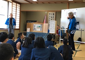 3年総合・子ども郷土史講座 投稿日時 : 2020/01/30 agatae 1月10日(金) 禁酒村の紙芝居を見たよ「河合谷禁酒を語り継ぐ会」の方々に紙芝居を披露していただきました。村の人たちが,全員で学校のために禁酒を5年間も続けたことを知り,子どもたちは,「ゲームを5年間やらないなんてできない」と自分にに置き換えて考えていました。 会の方々は,裕福な今の時代の子どもたちに,めざすもののために我慢をすることも必要で,そんな力を身に付けてほしいと語りかけてくださいました。 Tweet