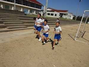 走るのが得意な子も苦手な子も自分のめあてをもって取り組んでいます。