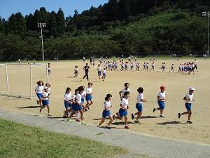 10月17日のマラソン大会に向け,長休みに全校児童がグラウンドを走ります。