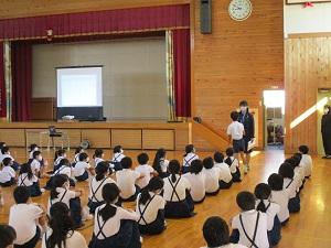 1つめは、あいさつのことです。みんなでしばらくの間、自分たちのあいさつが何点か表を見ながら平均点を出し、自分たちのめあてをしっかりと決めて取り組もうという話をしました。もう一つは、学校に来るのが楽しくないと思っている人がいて、もしその人が悩んでいるのなら、ぜひ相談してほしいし、誰かに何かされたり言われたりしているのなら、それは絶対許さないというお話もしました。みんな真剣に聞いてくれていました。辛い思いをしている子が一人でもいなくなって、みんなが安心して来れる英田小学校にしたいと伝えました。校長先生の思いが伝わったように思えました。
