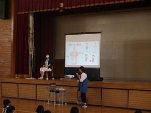 聞き方のポイント「目・手・体・口」のお話では、キラッキラの目をしたキャラクターが登場してみんなの目が一気にキラッキラになりました。姿勢の話では、どうしたらいい姿勢になれるのか、養護の先生から詳しく教えてもらうことができました。