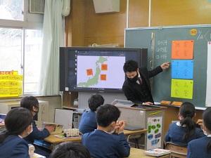 5年2組は今日初めて授業に取り入れました。写真はありませんが、4・6年生も今日が初めてです。5年1組は、少し進んでいて、今日は社会の授業で付箋に考えを書いて貼っていくという作業を覚えながら、授業に取り入れていました。