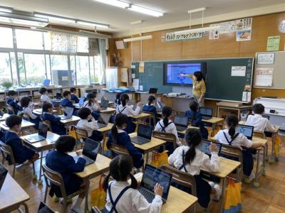 今日はICTサポーターの先生がお越しになり,1年生にパソコンの操作を教えていただきました。お絵描きソフトを使って,絵を描いてみました。子どもたちからは,「おーっ」とか「すごーい」といった声が上がっていました。