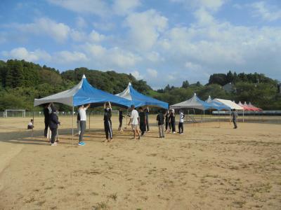 テントたてました 投稿日時 : 2023/09/19 agatae 彼岸の入りを間近にしても,連日30度を超える残暑が続いています。熱中症対策として,運動会の練習時から利用できるように,本日テントを設営しました。 保護者のみなさんにもお忙しい中お手伝いをいただき,児童用テントと本部テントの計5張りを設営しました。 明日から全体練習がスタートします。テントを利用し熱中症対策もとりながら,練習を進めていきます。 Tweet