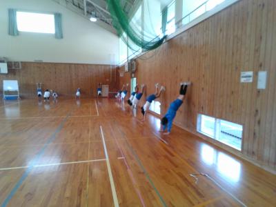 運動会に向けて 高学年 投稿日時 : 2023/09/07 agatae 今朝は昨日よりも涼しくなり、10時を過ぎても30度にはなっていません。WBGT(熱中症警戒指数)も警戒レベルには達していません。体育館の中も涼しく感じます。 高学年は集団演技の中にある、「逆立ち」の練習に取り組みました。普段逆立ちをする機会はほぼありませんね。そこで壁を使って、徐々に脚を上げ、逆立ちの姿勢の感覚をつかみました。 手を置く場所、目線、足先などに注意を配っていきます。本番までまだまだ時間があります。練習を繰り返し、徐々にコツをつかんでいきましょう。 Tweet