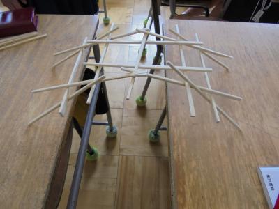 最初はなかなか組み上がらなかったのですが、どんどん長く、しっかりしたものが出来るようになってきました。コツは「バランス」と「集中力」です。橋全体を見つつ、バランスを取って割り箸を組み込んでいくことが大切です。