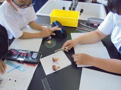 理科の生き物 投稿日時 : 2023/06/22 agatae 理科ではいろんな生き物や植物の観察をします。 卵から育てたモンシロチョウは今週に入り孵化しはじめました。5年生が飼っているメダカは,水草に卵を産み付けています。 6年の理科では、ブロッコリーやセロリなどの野菜を使い、決まった水の通り道があるのか、実験・観察を行いました。 Tweet