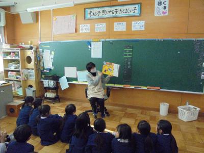火曜日と金曜日の朝は「朝の読み聞かせ」の日です。先生方以外に、図書館司書の先生、ボランティアのみなさんに読み聞かせをしていただいています。