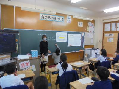 今日はゲストティーチャーに県金融広報員の北本さんをお招きし、消費者教室を行いました。