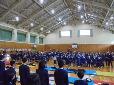 6年生を送る会 投稿日時 : 2024/02/28 agatae 今日の2,3限,本校体育館で6年生を送る会が行われました。 どの学年も表現,歌,演奏,演技など,どれをとっても素晴らしく,とても良い発表をすることができました。きっと6年生の心にもみんなの感謝の気持ちが届いたことと思います。 また,先月の授業参観に続き,今日も多数の保護者の方に参観いただきました。今年度の参観が伴う学校行事は今日が最後です。今年一年間ありがとうございました。 早いもので,あと2週間と少しで卒業式です。いよいよカウントダウンです。 Tweet