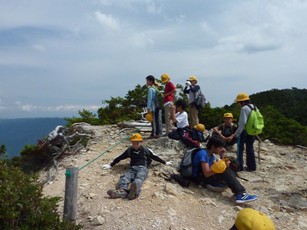三方岩岳登山では、険しいやぶこぎのところもあったのですが、全員登頂することができました。山頂では、お湯を沸かし、カップ麺を食べました。