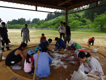 資源回収に引き続き、PTA育成部や地区責任者の方が土俵を直してくださいました。これで町子ども会相撲大会に向けて練習することができます。