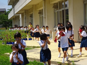 地震対応避難訓練 投稿日時 : 2015/07/10 agatae 7月10日、県民一斉防災訓練(シェイクアウトいしかわ)に合わせて、地震対応避難訓練を実施しました。 地震が起きた場合の対応の仕方を各学級で指導をした後、地震が発生したという想定で運動場に一次避難、運動場裏の山に、がけ崩れの恐れがあるということで児童玄関前に二次避難をしました。 昨年度の同様の訓練と比べると、避難に要した時間の短縮が見られました。